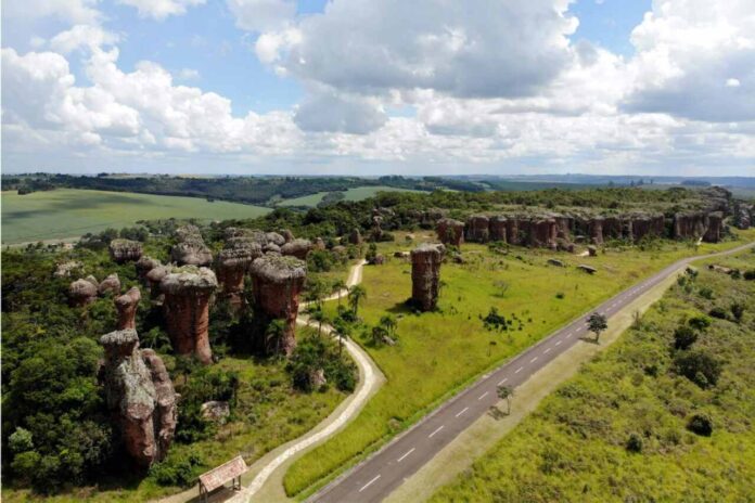O Parque Estadual de Vila Velha, localizado na município de Ponta Grossa, no Paraná, é um museu a céu aberto onde a geologia é a principal atração. A jornada pelo parque começa necessariamente pelos famosos arenitos, formações rochosas esculpidas pela ação do vento e da chuva ao longo de milhões de anos.